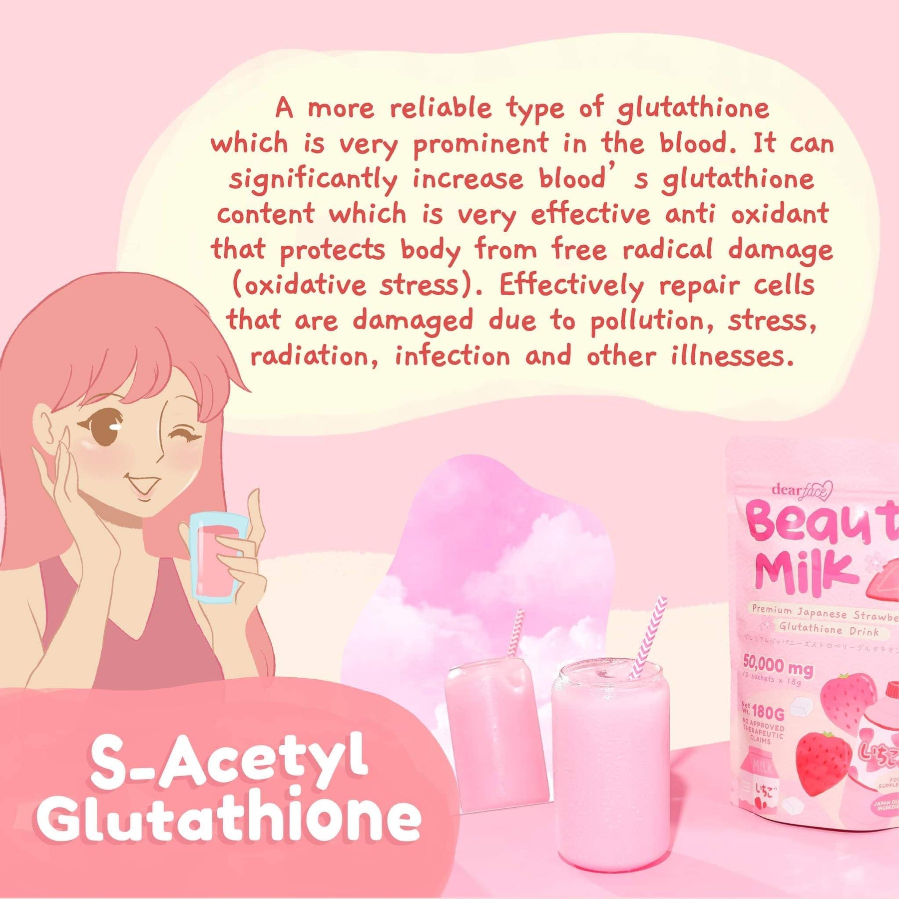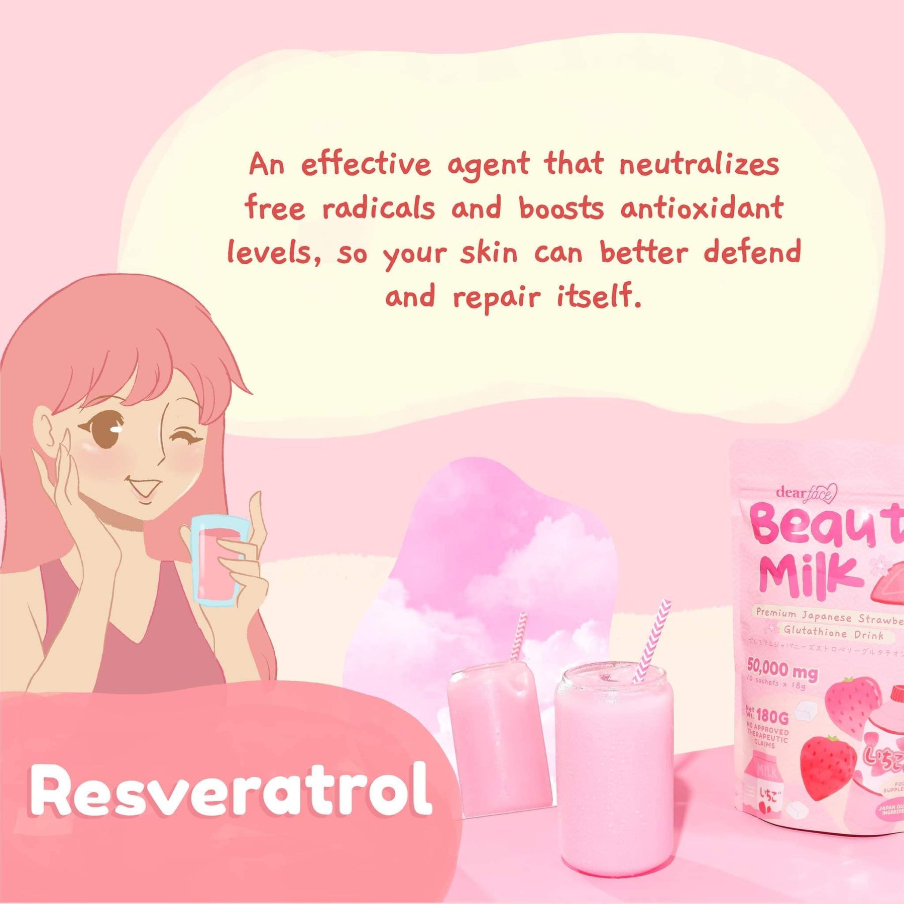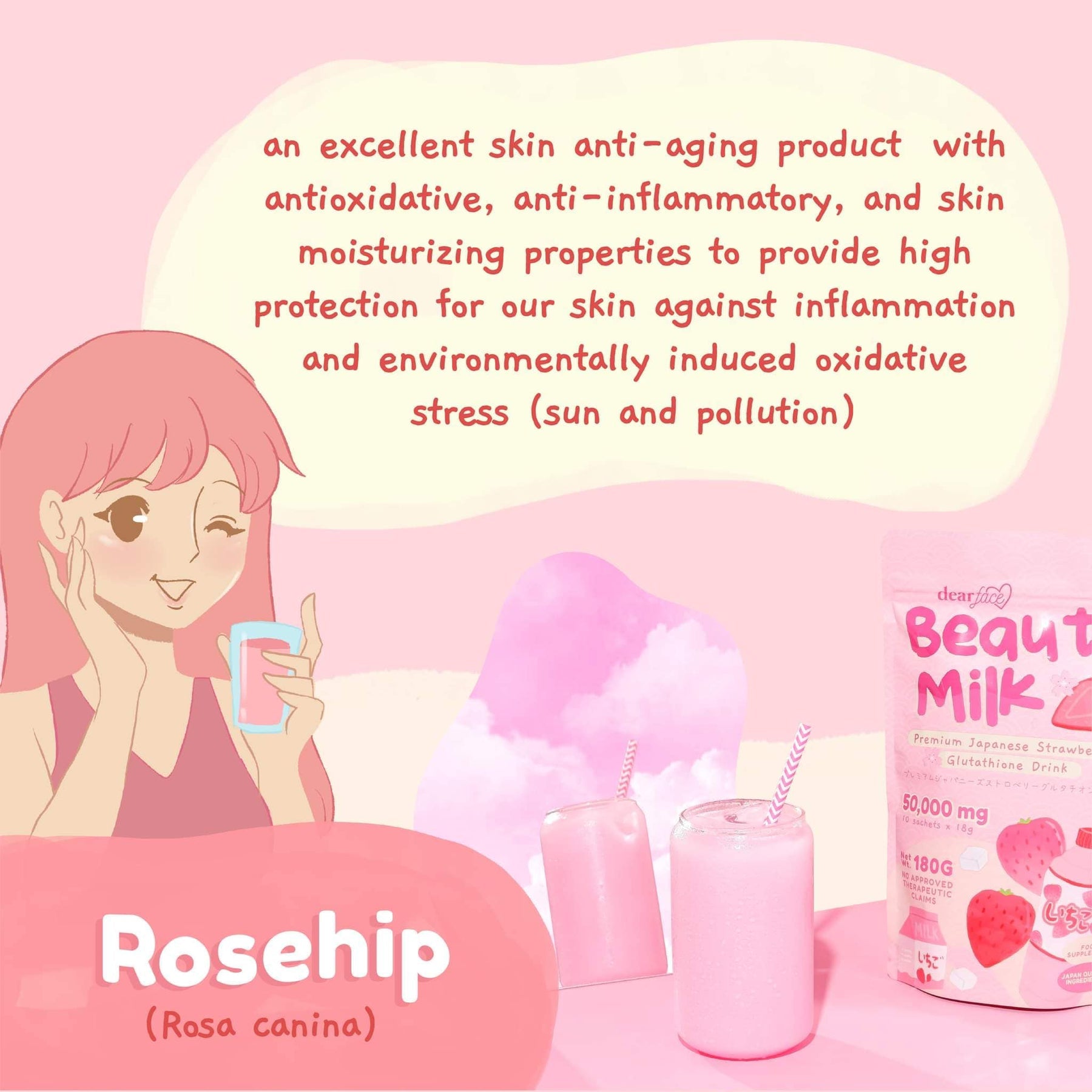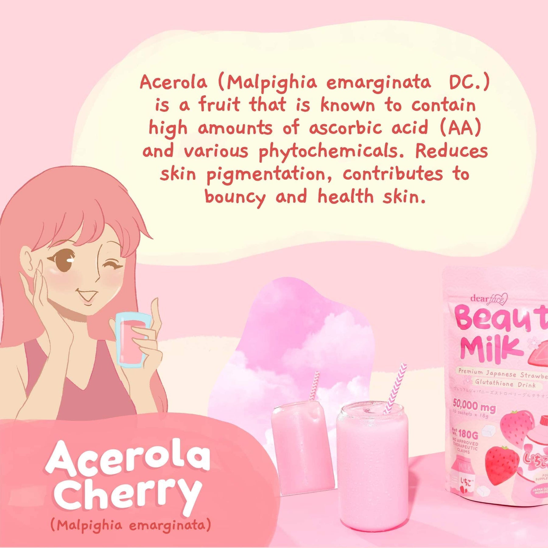 Dear Face Beauty Milk Ichigo Premium Japanese Strawberry Glutathione Drink