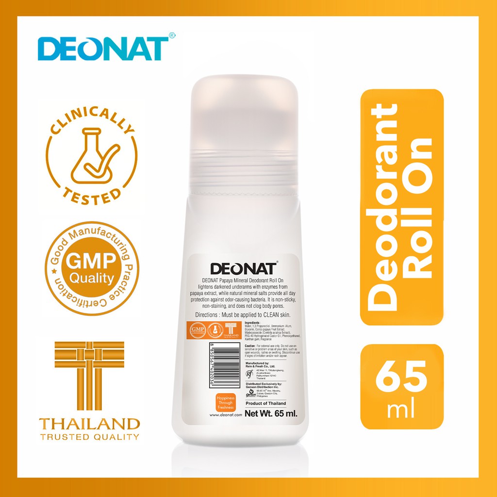 Deonat Papaya Mineral Deodorant Roll On lightens darkened underarms with enzymes from papaya extract, while natural mineral salts provide all day protection against odor-causing bacteria. It is non-sticky, non-staining and does not clog pores.