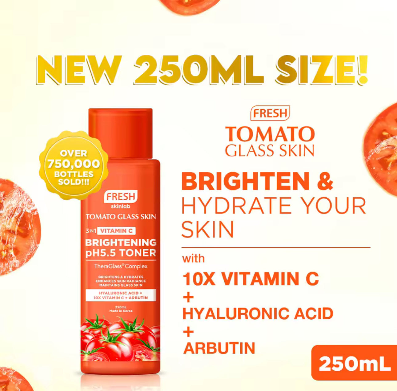 Fresh Skinlab Tomato Glass Skin 3 in 1 Vitamin C Brightening Toner (Bigger size - 250ml)